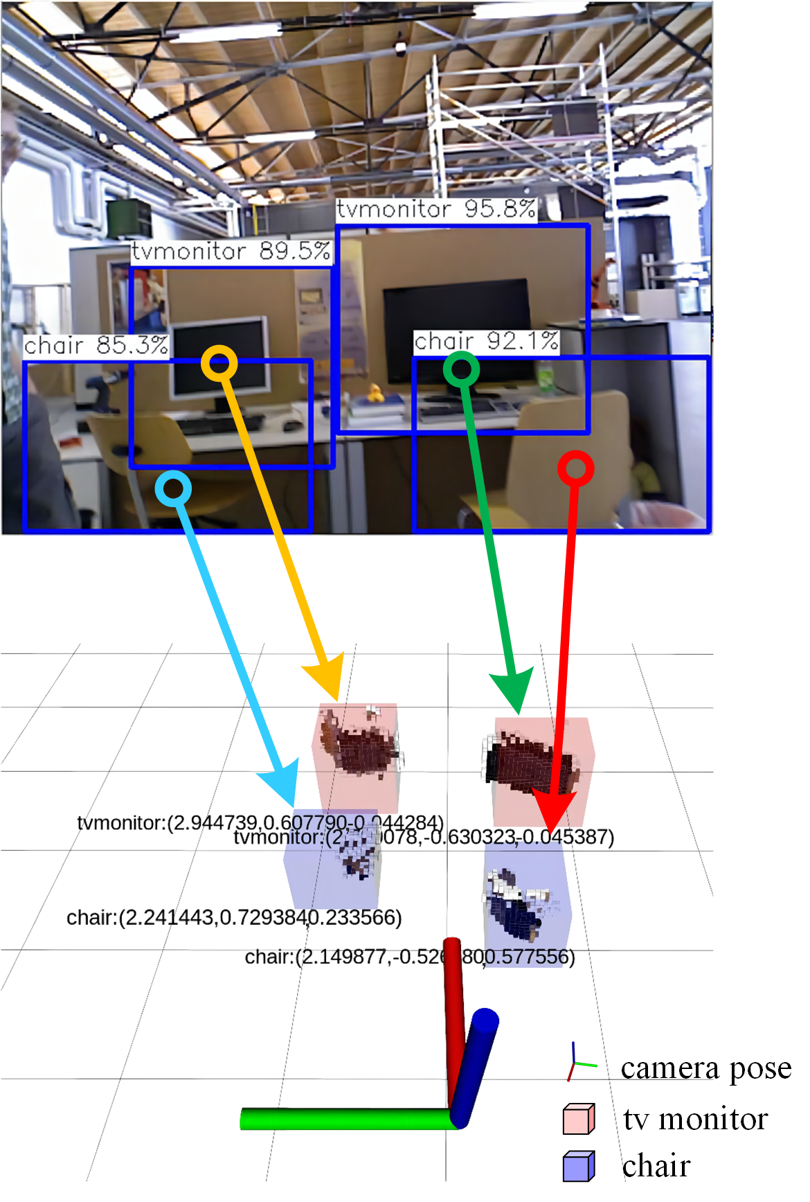 Figure2. Semantic object metric map for tum rgbd dataset fr3/walking_xyz sequence